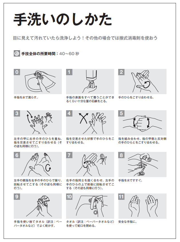 インフルエンザを含め、流行するさまざまな感染症からご自身と周囲の方々の身を守るためにも、正しい手洗いの方法を覚え、感染予防に活かしましょう!