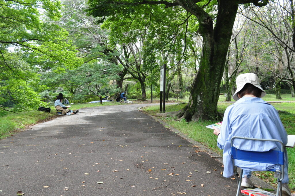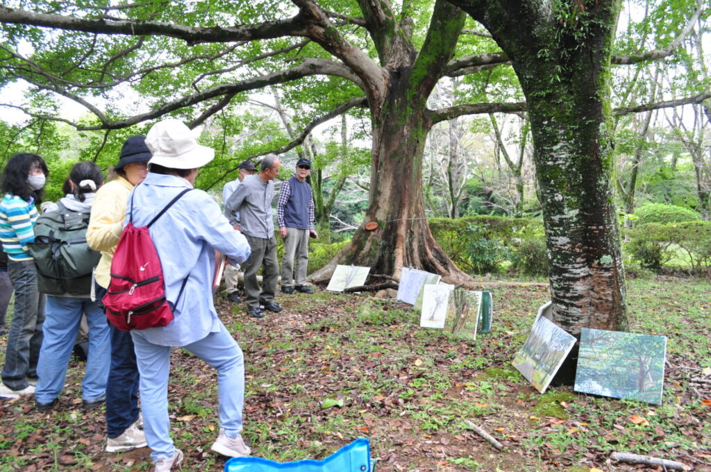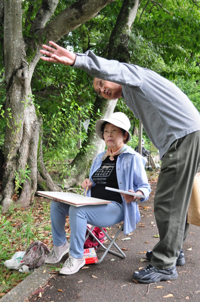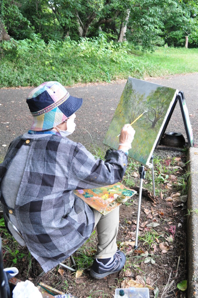 散策路沿いでキャンバスを構える女性は、入会して10年以上。「楽しくて和気あいあいで、色々と教えてくれて、励ましにもなる」と語り、自己流で描いていた頃には得られなかった充実感を滲ませます。