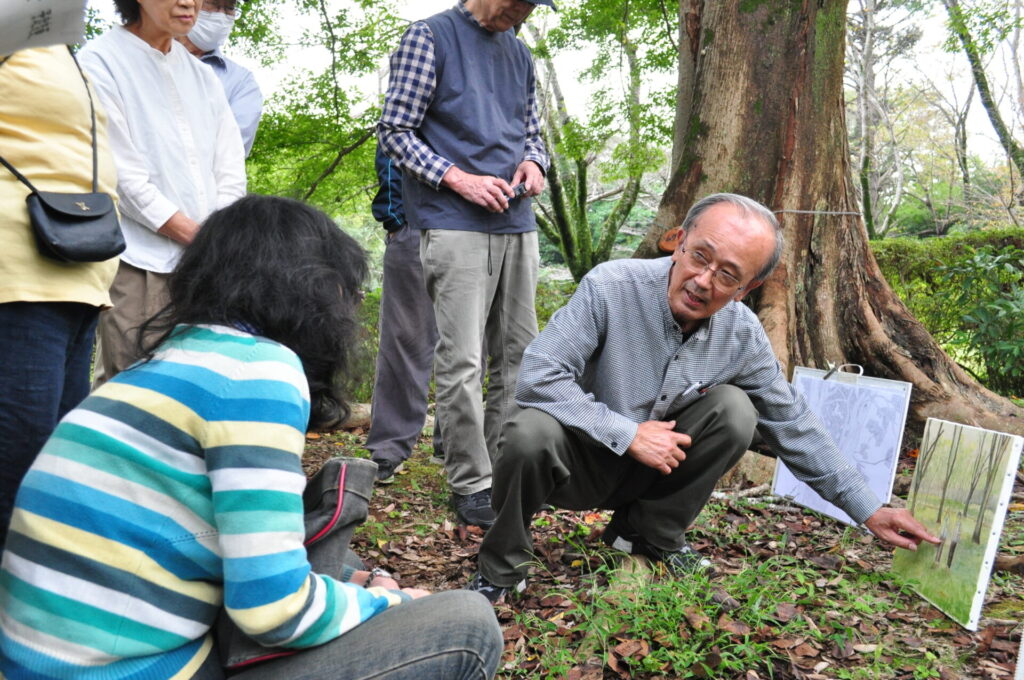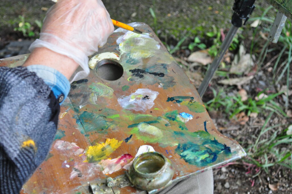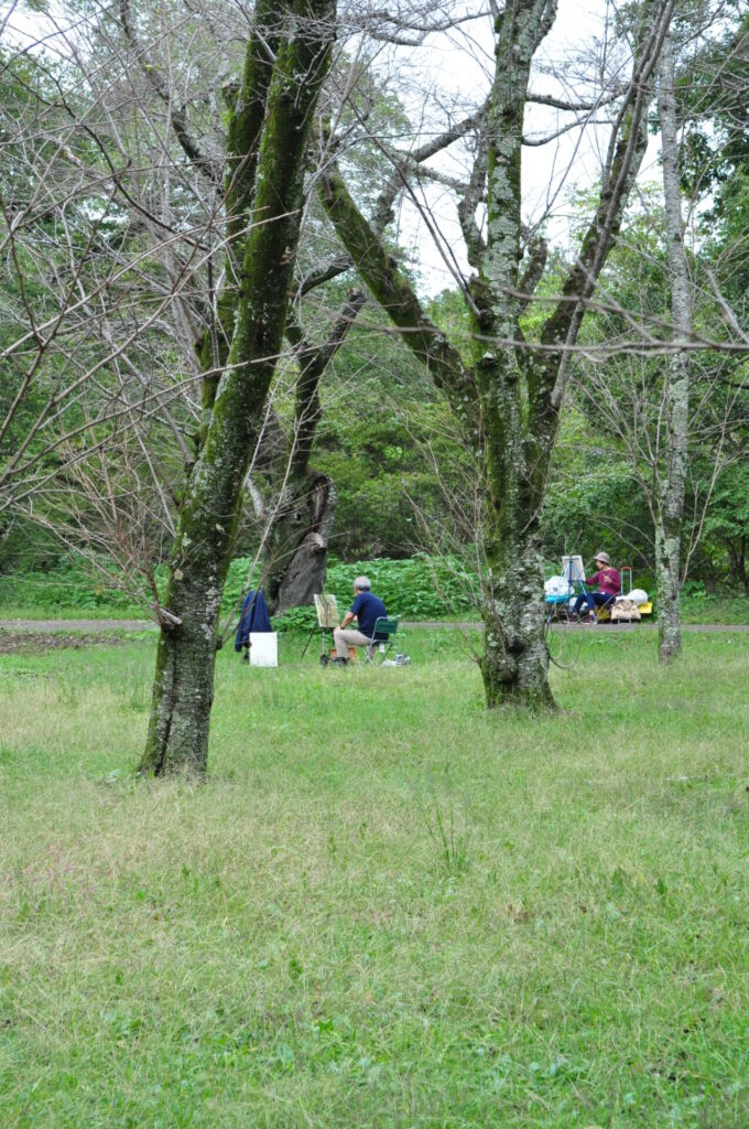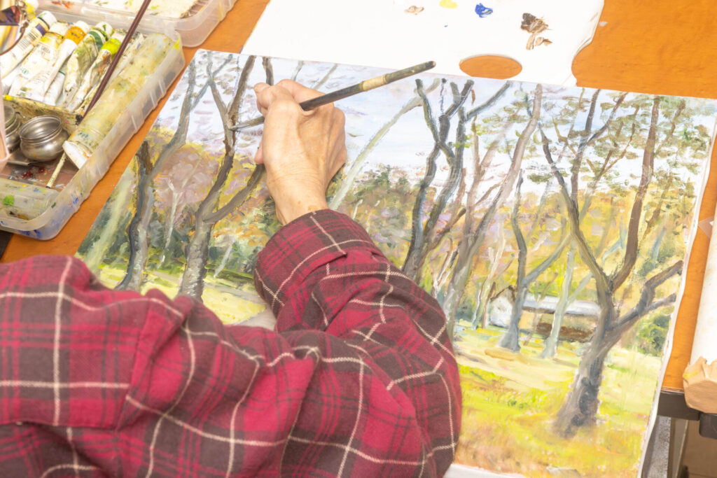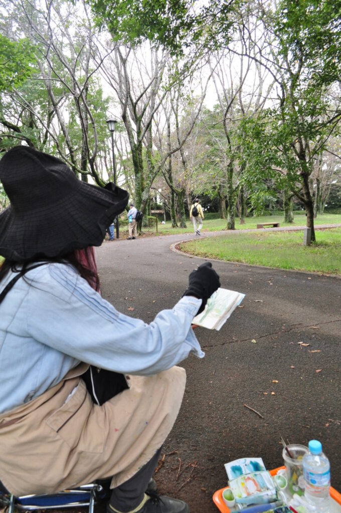 散策路沿いでキャンバスを構える女性は、入会して10年以上。「楽しくて和気あいあいで、色々と教えてくれて、励ましにもなる」と語り、自己流で描いていた頃には得られなかった充実感を滲ませます。