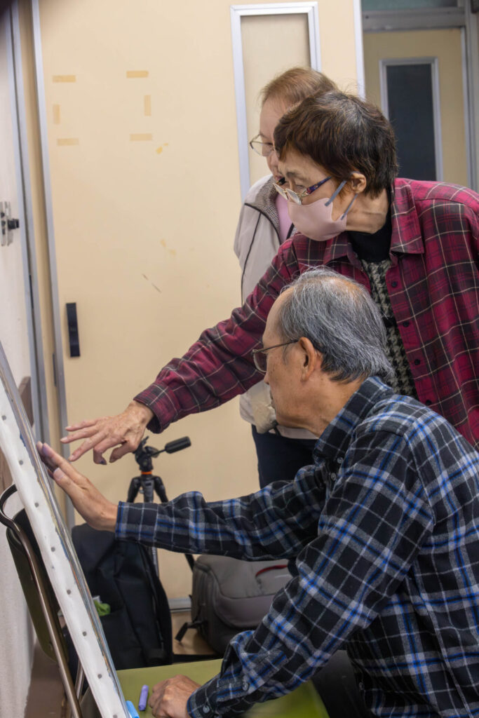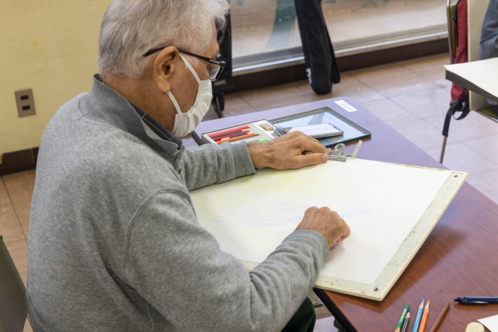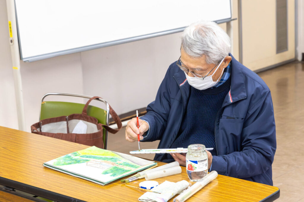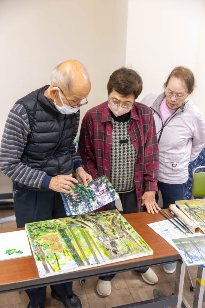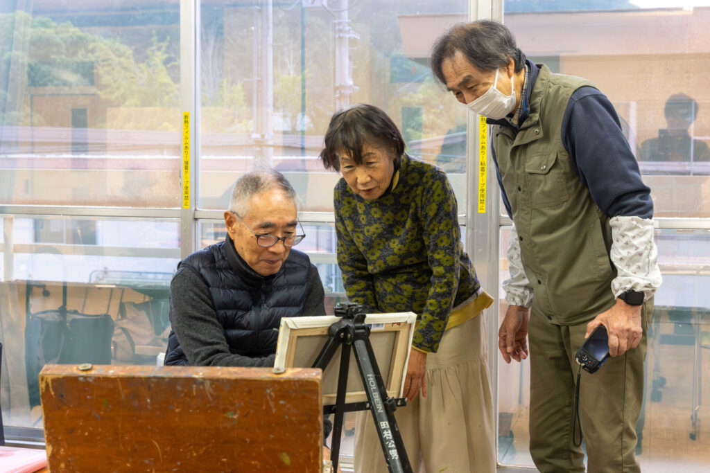 描いている仲間のもとに行き、題材や描き方の話で盛り上がったり、画材について尋ねるなど、教室のいたるところで、絵画談義に花が咲きます。