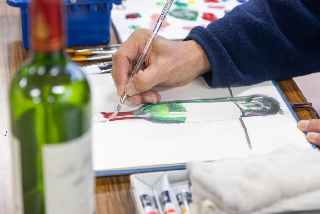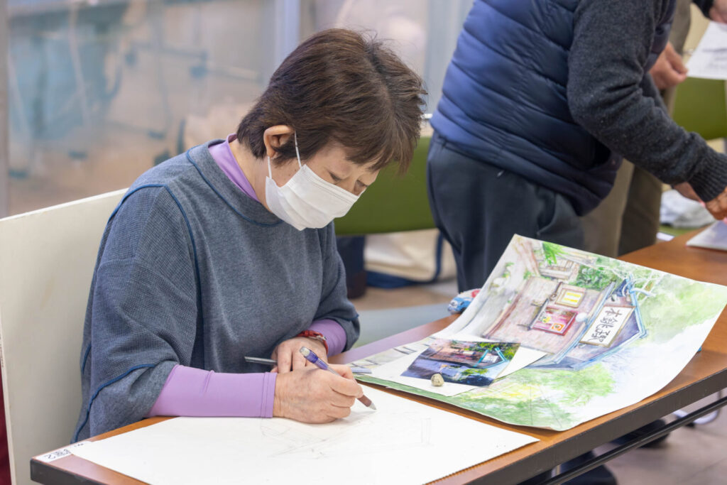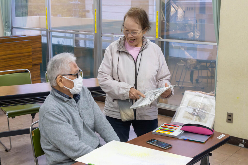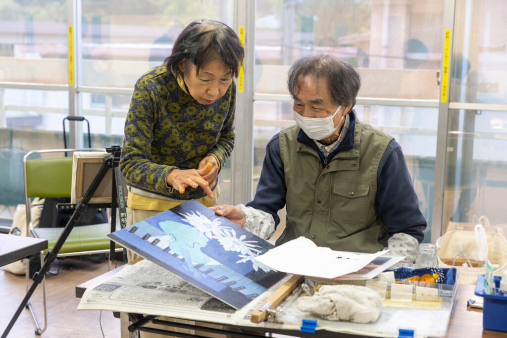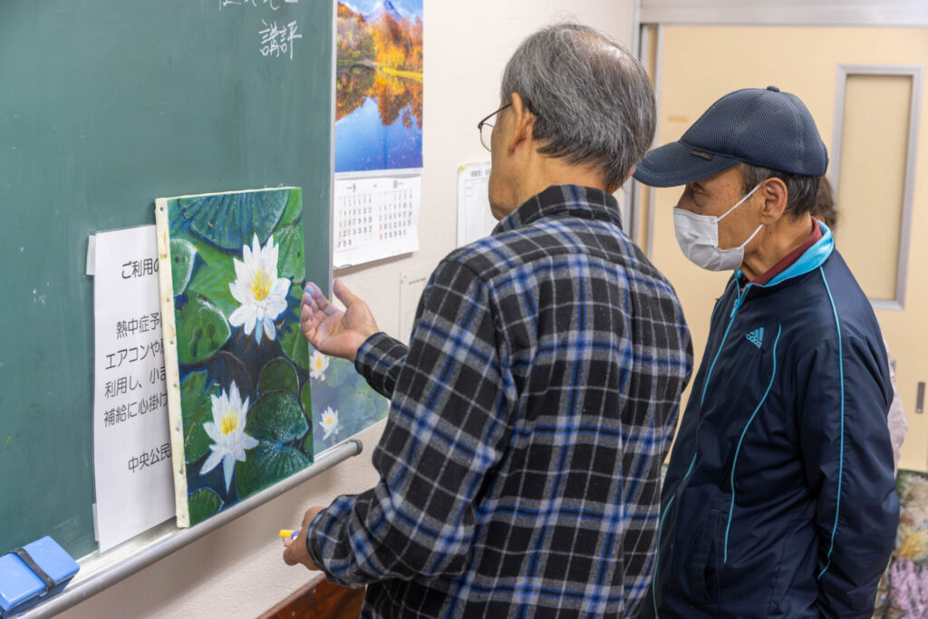 描いている仲間のもとに行き、題材や描き方の話で盛り上がったり、画材について尋ねるなど、教室のいたるところで、絵画談義に花が咲きます。