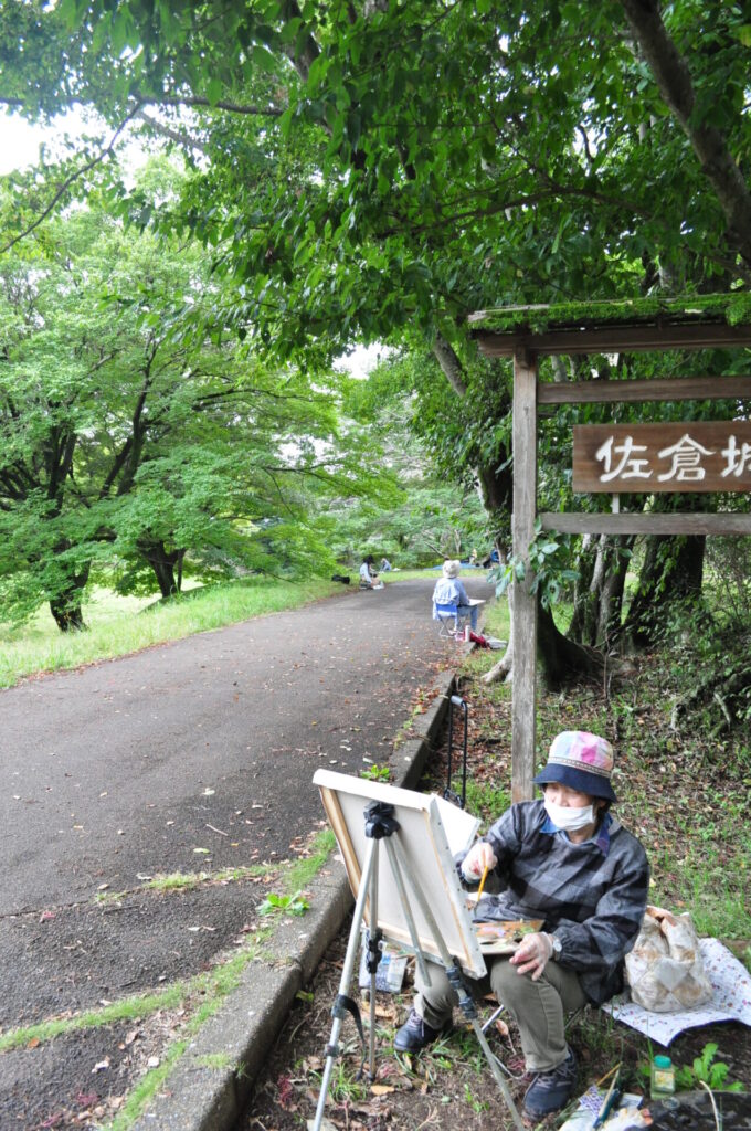 10月中旬、今年3回目となる写生会が佐倉城址公園で行われました。写生会には約15名が参加。それぞれの場所で午前中から絵筆を走らせます。10月といっても今年はまだ緑が多く、この日は前日に降った雨の影響もあり、木々の葉が瑞々しく映ります。
