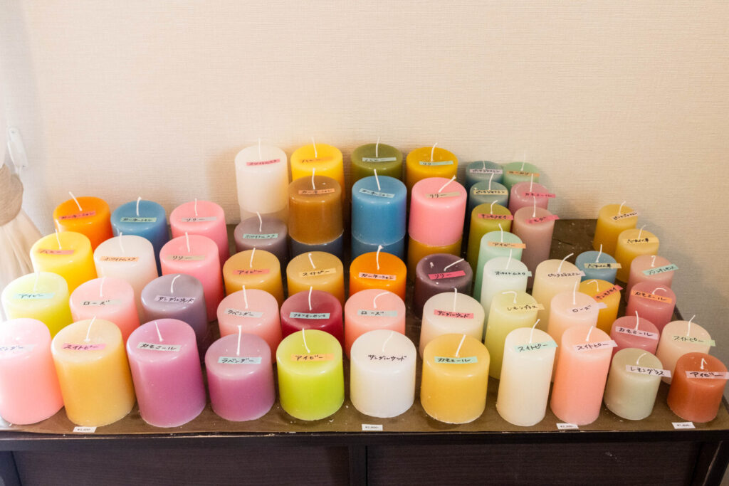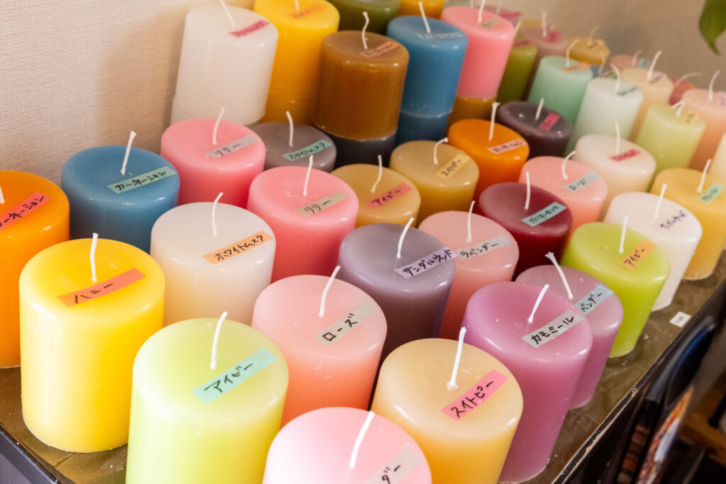 「7Grace Candle」では、キャンドルの芯から制作。芯はリリーやサンダルウッド、カモミール、ローズ、スイトピー、ラベンダーなど、様々な植物の香料が入っており、ほのかな香りに癒やされます。また、カラーは顔料をブレンドして色付けしていることから、1つとして同じものはありません。
