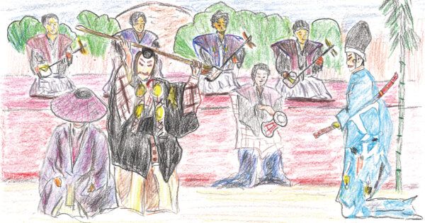 大学を卒業してゆく若者たちに、ラオシー先生は、男の情の話をしました。平家を滅ぼした源氏の総大将、九郎判官義経(くろうほうがんよしつね)一行は、兄の源頼朝(みなもとのよりとも)に疎まれ、逃避行の末、加賀の国、安宅(あたか)の関守、富樫左衛門(とがしさえもん)に尋問されます。山伏を装った武蔵坊弁慶が、主君義経を杖で打ちすえてまで疑念を晴らそうとする姿に、富樫は胸を打たれ、義経一行を見逃すのです。富樫から酒を振る舞われた弁慶は、返礼の舞を踊り、義経の後を追って花道へ去ります。富樫は、閉じた扇子を高くかかげて無事を祈るのです。歌舞伎十八番の勧進帳(かんじんちょう)でしたね。(つづく)