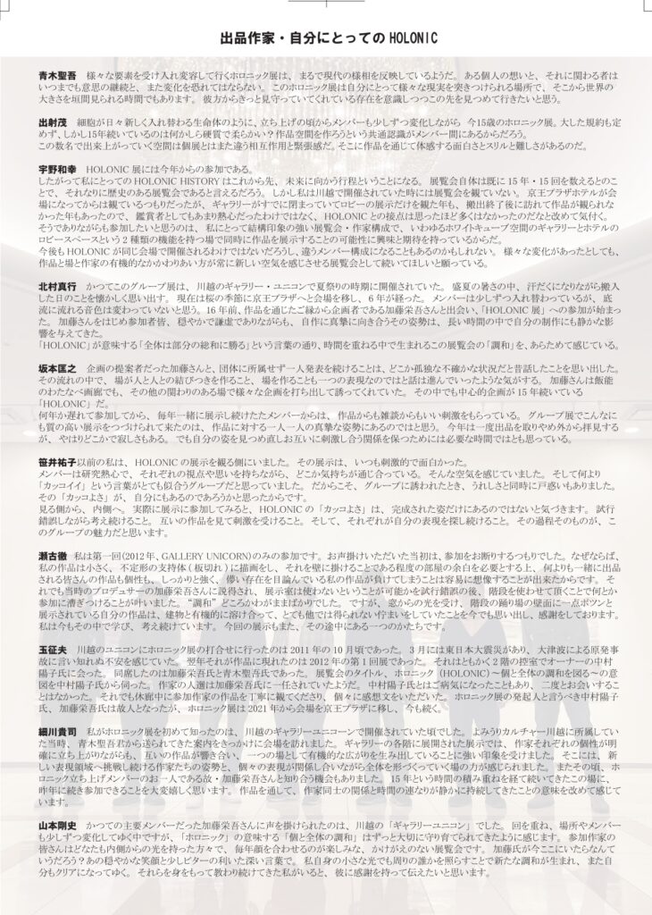 HOLONIC展は、埼玉県川越市にあるギャラリーユニコンから始まりました。ホロニックとは、「部分と全体の調和」あるいは「全体は部分の総和に勝る」といった意味を持ちます。