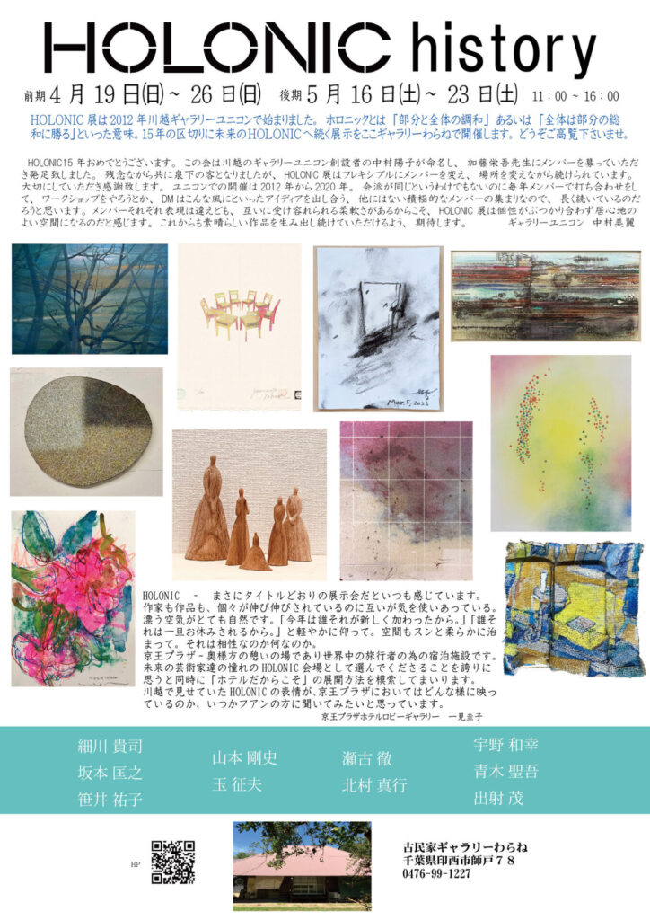 前期4月19日(日)~26日(日)と後期5月16日(土)~23日(土)までの期間、印西市師戸(もろと)にあるギャラりーわらねで、「HOLONIC history」展が開催されます。