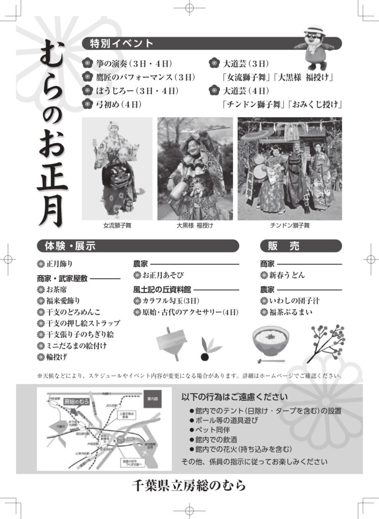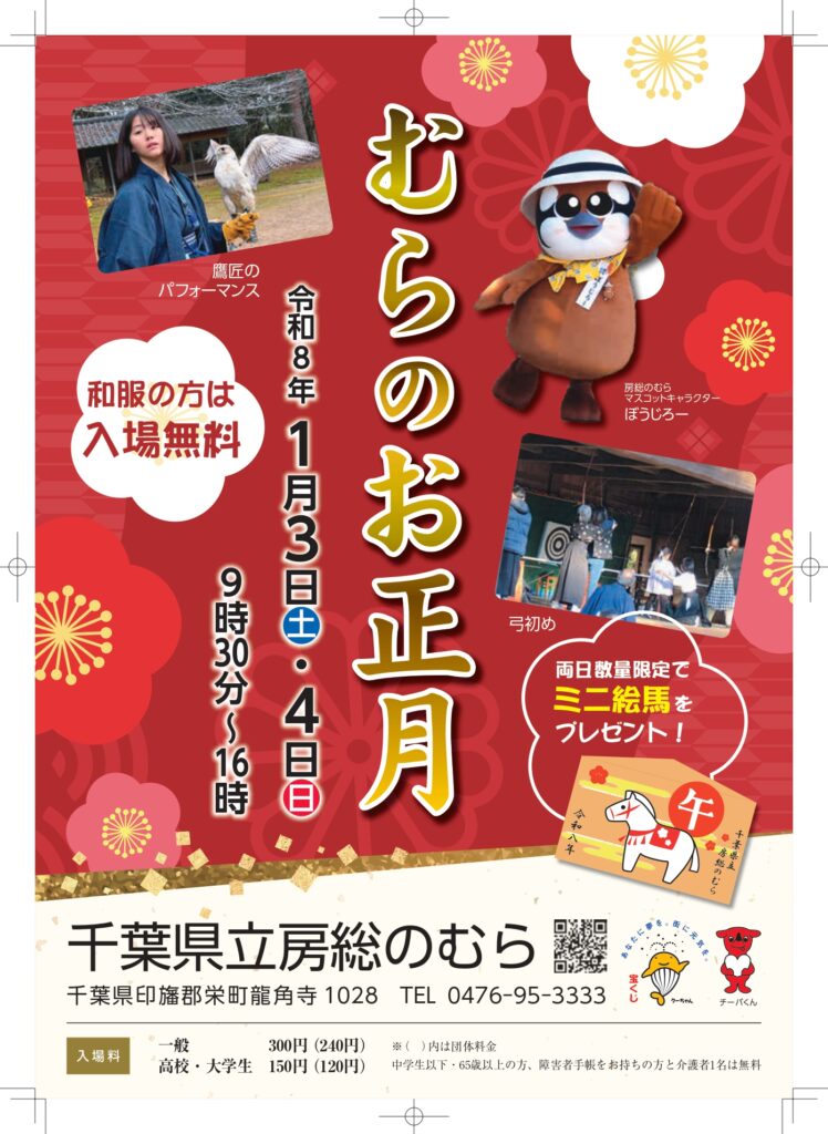 2026年1月3日(土)・4日(日)の二日間、印旛郡栄町にある「千葉県立房総のむら」で、特別イベント「むらのお正月」が開催されます。