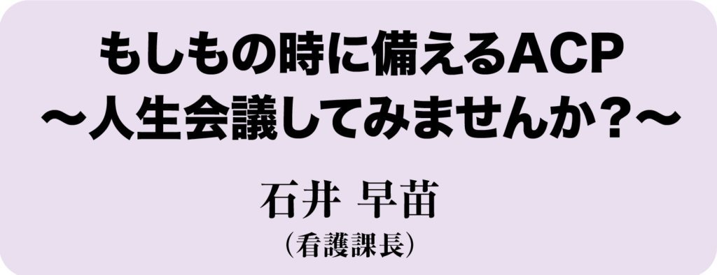 医師より緩和ケアの役割や医療選択の重要性から始まり、看護師によるACP(人生会議)の基礎について丁寧にお話しします。
