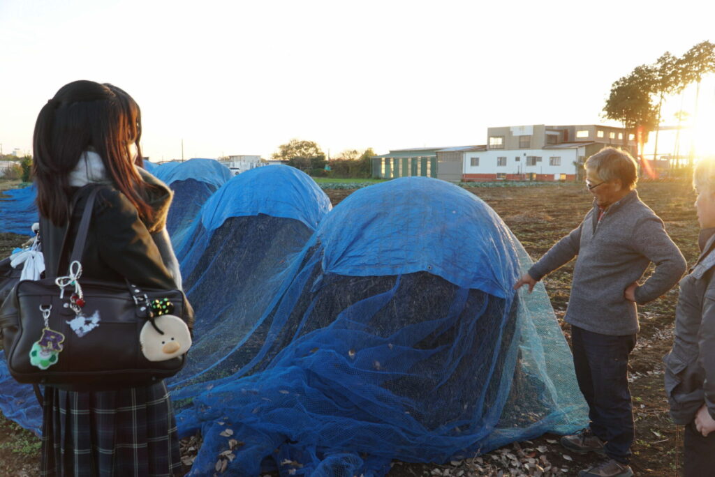 11月には「三石農園」と「鹿放ケ丘開拓資料室」を見学。農園主から直接話を聞くなど、郷土の歴史と特産品について学びました。その後、12月に成果発表、3月13日(金)に四街道市役所で販売会が行われました。