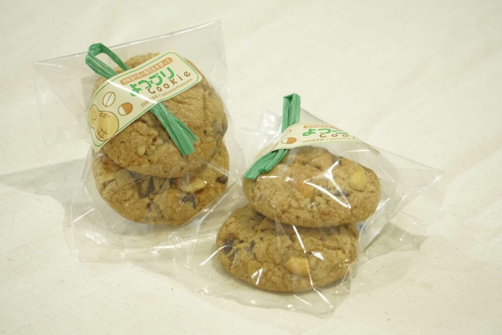 商品名の「よつ×プリクッキー」は、四街道高校とプリムヴェールのコラボレーションの意味を込めて命名。クッキーの主役には、四街道ならではの農産物である落花生を取り入れ、市内鹿放ケ丘(ろっぽうがおか)で農業を営む「三石農園」のナカテユタカを使用しました。