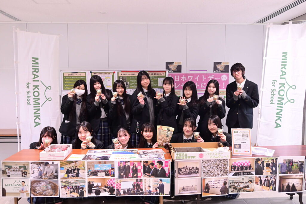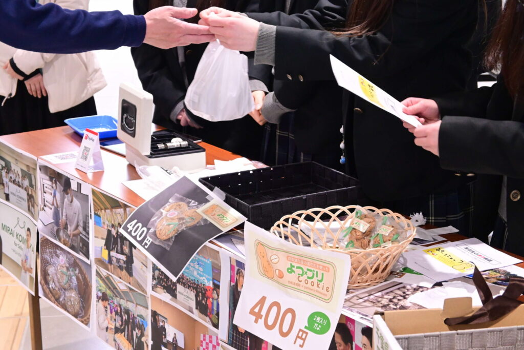 3月13日(金)、四街道市役所 本館1号棟1階 市民ホールで、四街道高校の生徒たちが考案したスイーツ「よつ×プリクッキー」の限定販売が行われました。