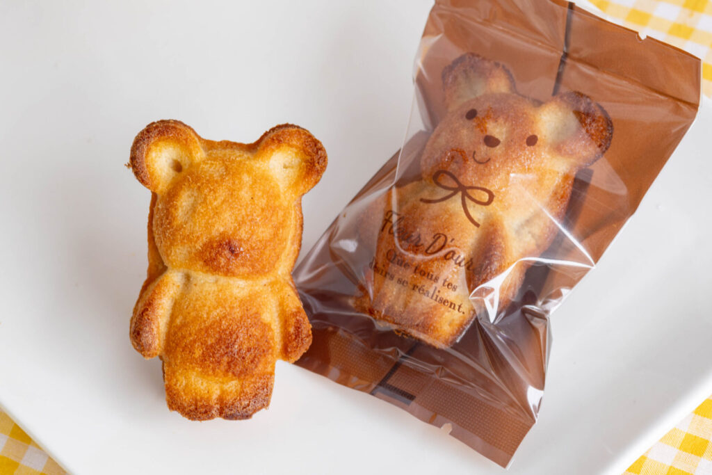 「クマのフィナンシェ」は、見た目の可愛いらしさはもちろん、焦がしバターとアーモンドパウダーが香る伝統の味わい。「ガレット・ブルトンヌ」は、トップのパリパリ感としっとりとした生地の食感のバランスが絶妙。ほんのりとした甘さのなかにも、発酵バターの旨味とアクセントの塩味が効いた美味しさです。