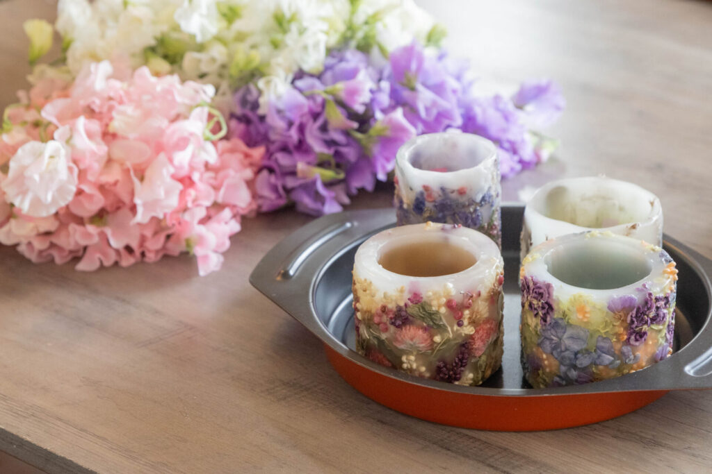 色とりどりの花々と植物の香りに包まれながら創作する時間や空間そのものが癒やしであり、世界に一つだけのオリジナルキャンドルの完成に達成感が溢れます。